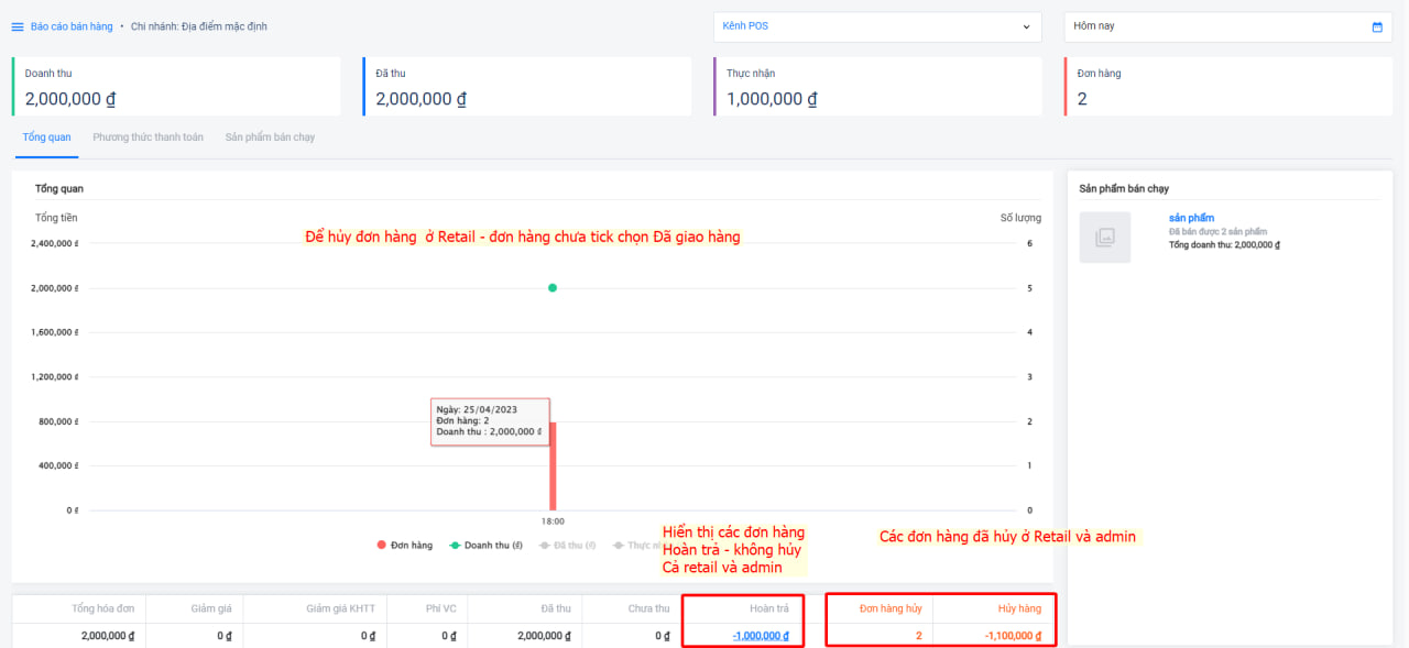 Báo cáo cuối ngày Haravan POS không ghi nhận đơn hàng hoàn trả