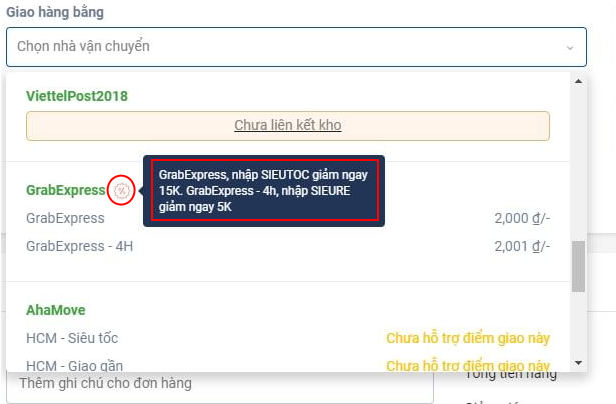 Làm sao để áp dụng được mã khuyến mãi từ Grab khi tạo vận đơn?