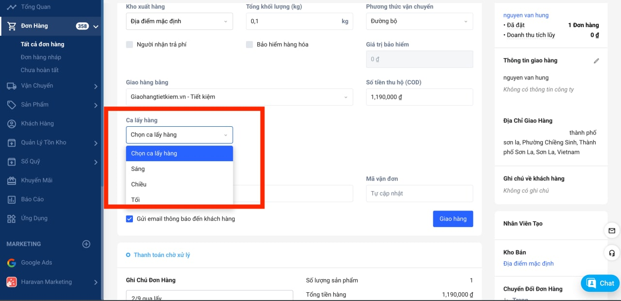 Ví dụ buổi sáng nhà bán hàng tạo vận đơn, chọn ca chiều lấy hàng thì buổi chiều GHTK sẽ đến lấy hàng.