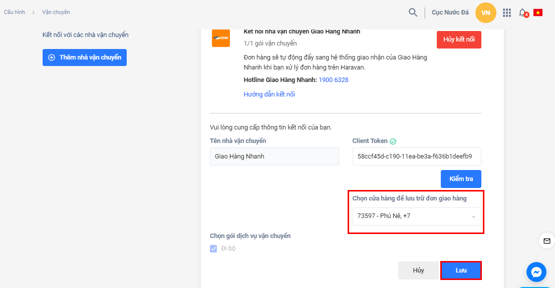 Làm sao liên kết thêm kho Giao hàng nhanh vào admin Haravan?