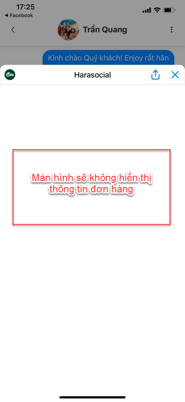 Tuy nhiên với quyền admin của trang, khi truy cập vào Messenger để xem thông tin đơn hàng thì sẽ không thể xem được.