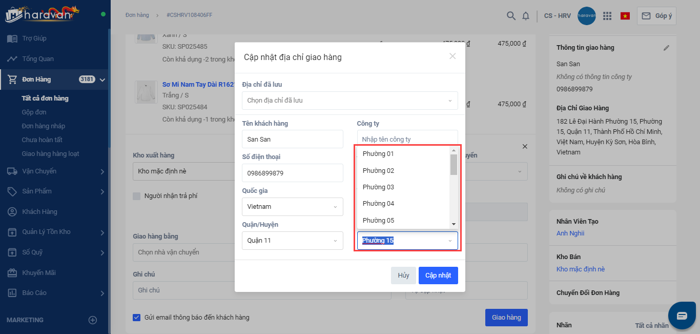 Khắc phục lỗi "Phường/xã giao hàng không được trống"