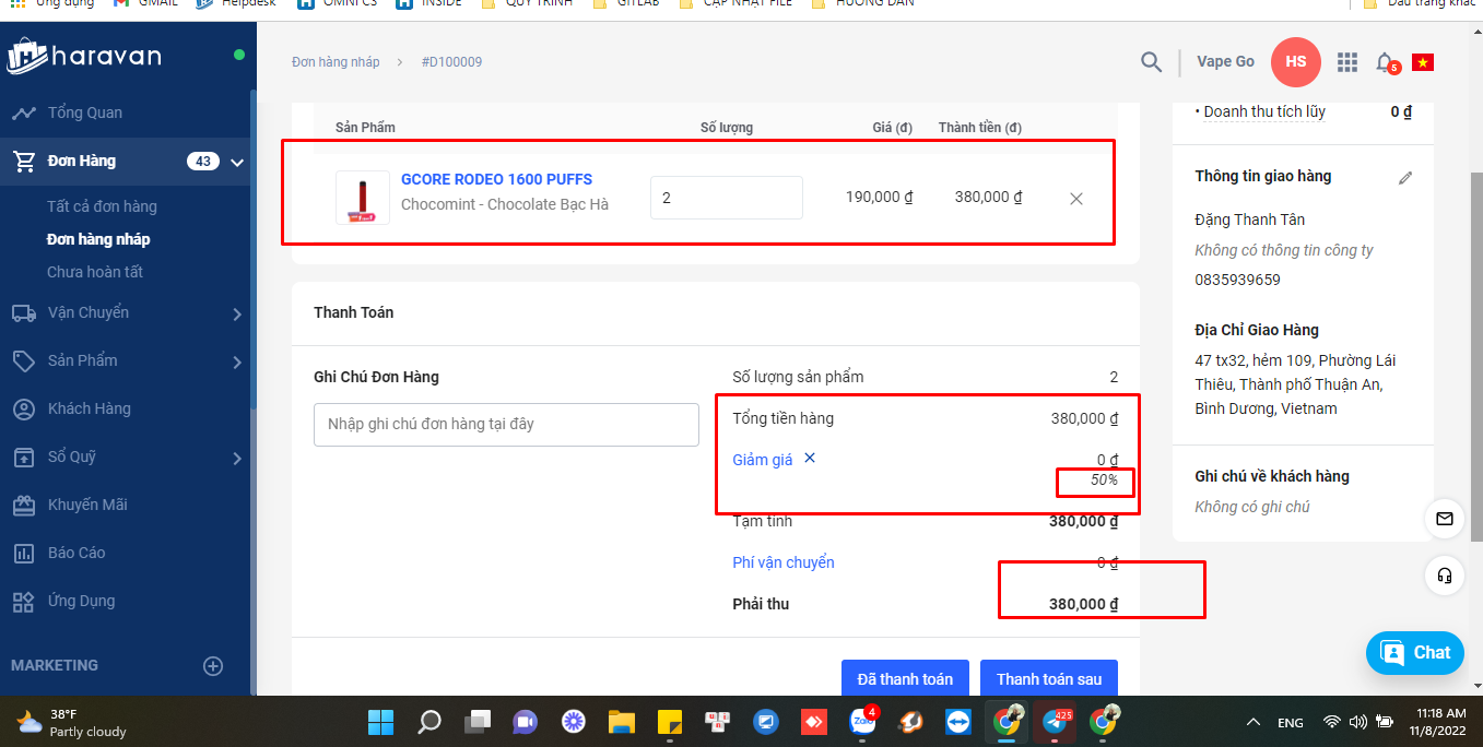 Không giảm giá sản phẩm khi tạo đơn hàng