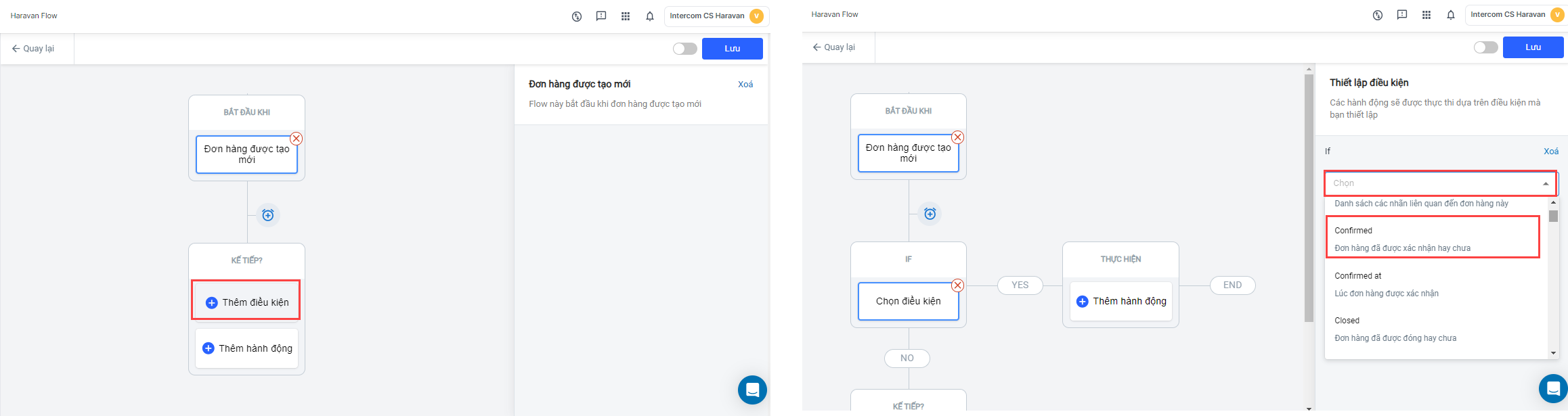 - Chọn Thêm điều kiện và chọn điều kiện "Confirmed*(đơn hàng đã được xác nhận hay chưa)*"