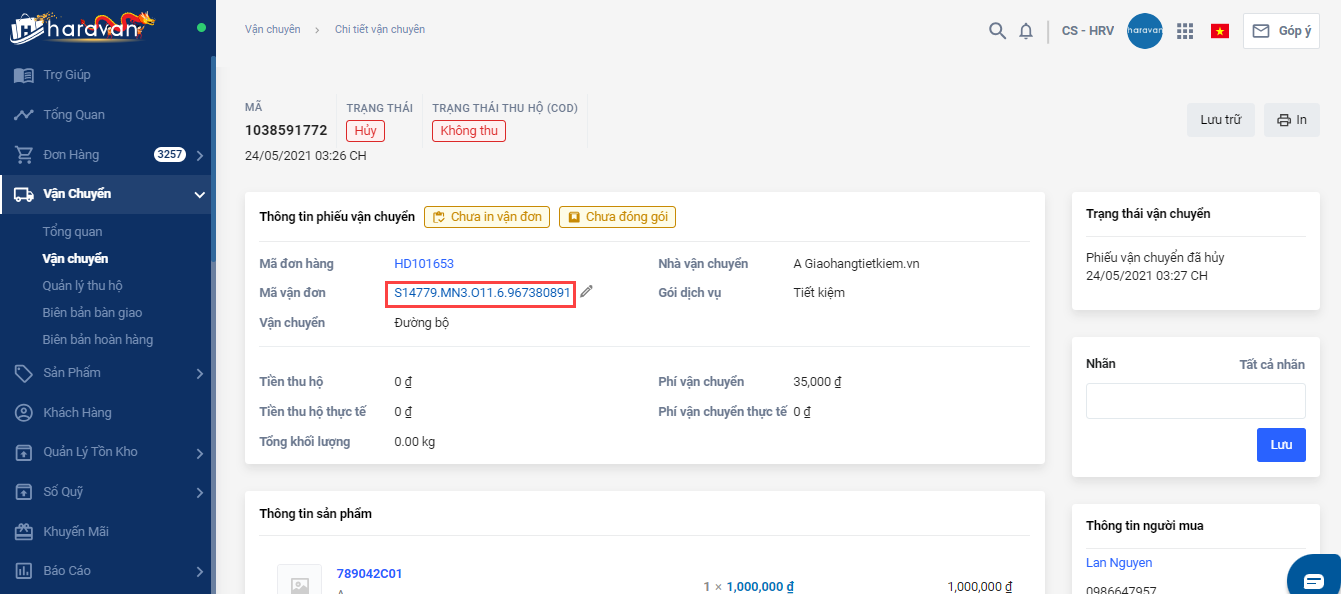 Thông qua mã vận đơn, chủ cửa hàng và nhà vận chuyển có thể truy xuất được thông tin giao hàng và thanh toán của gói hàng đó.
