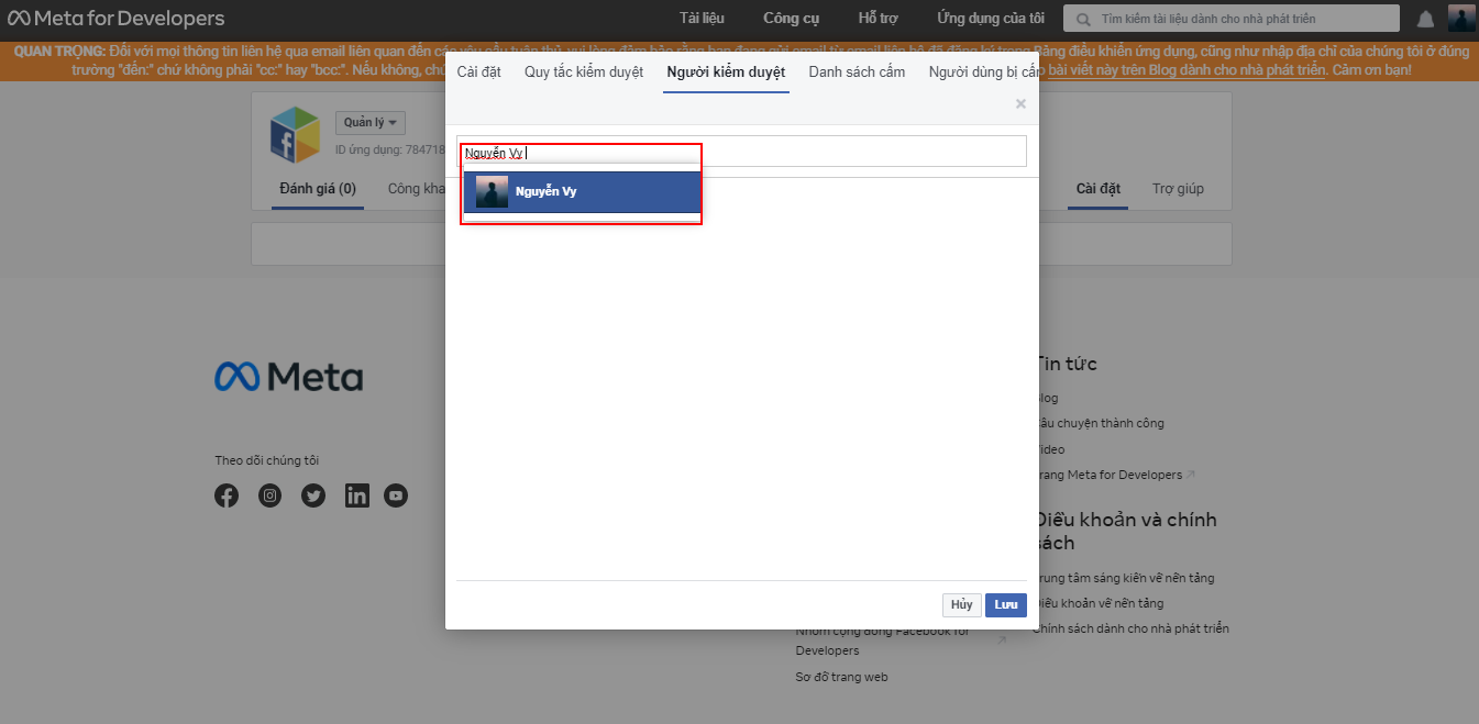 Bước 4: Trong thẻ Người kiểm duyệt, bạn thêm Facebook cá nhân muốn nhận thông báo khi có comment trên website.