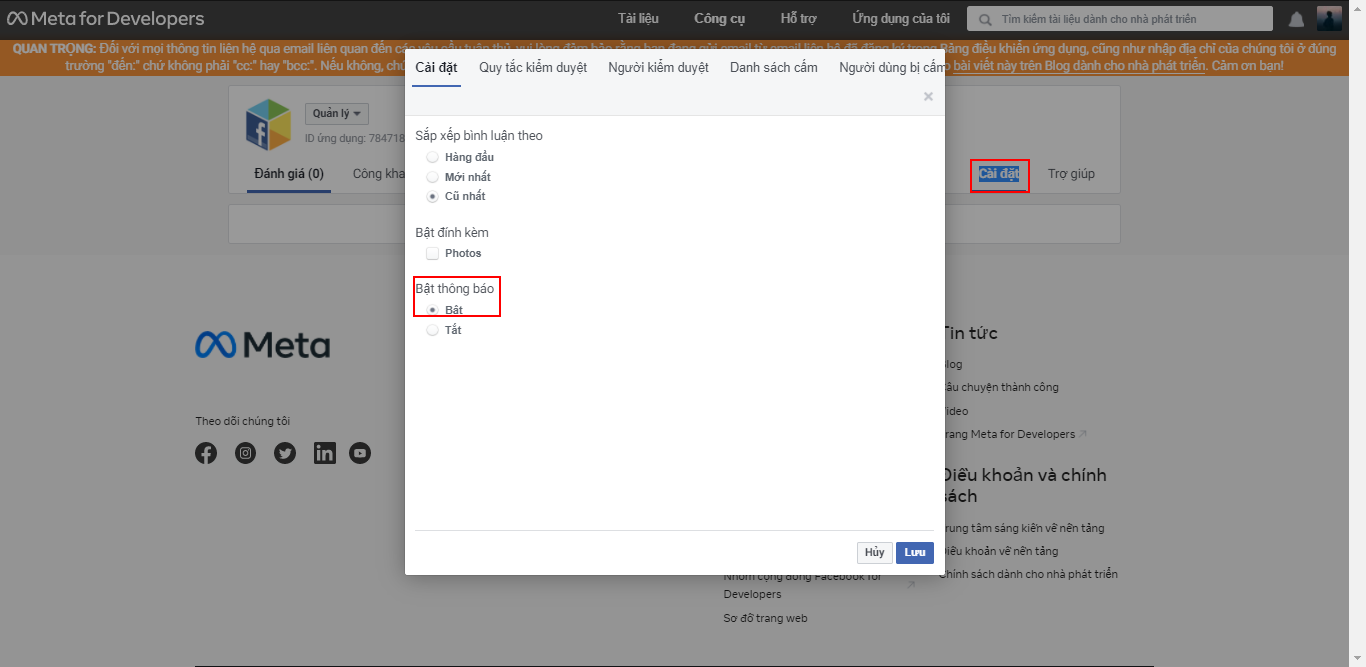 Làm thế nào để nhận thông báo ở facebook cá nhân khi có comment trên website ?