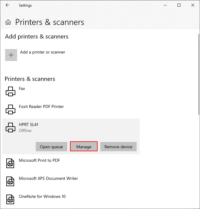 **Bước 2:**Chọn vào máy in đang sử dụng và chọn Manage