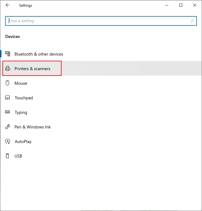 Bước 1: Bạn vào thiết lập (setting) của máy tính, tìm mục Printers & scanners (máy in và máy quét)