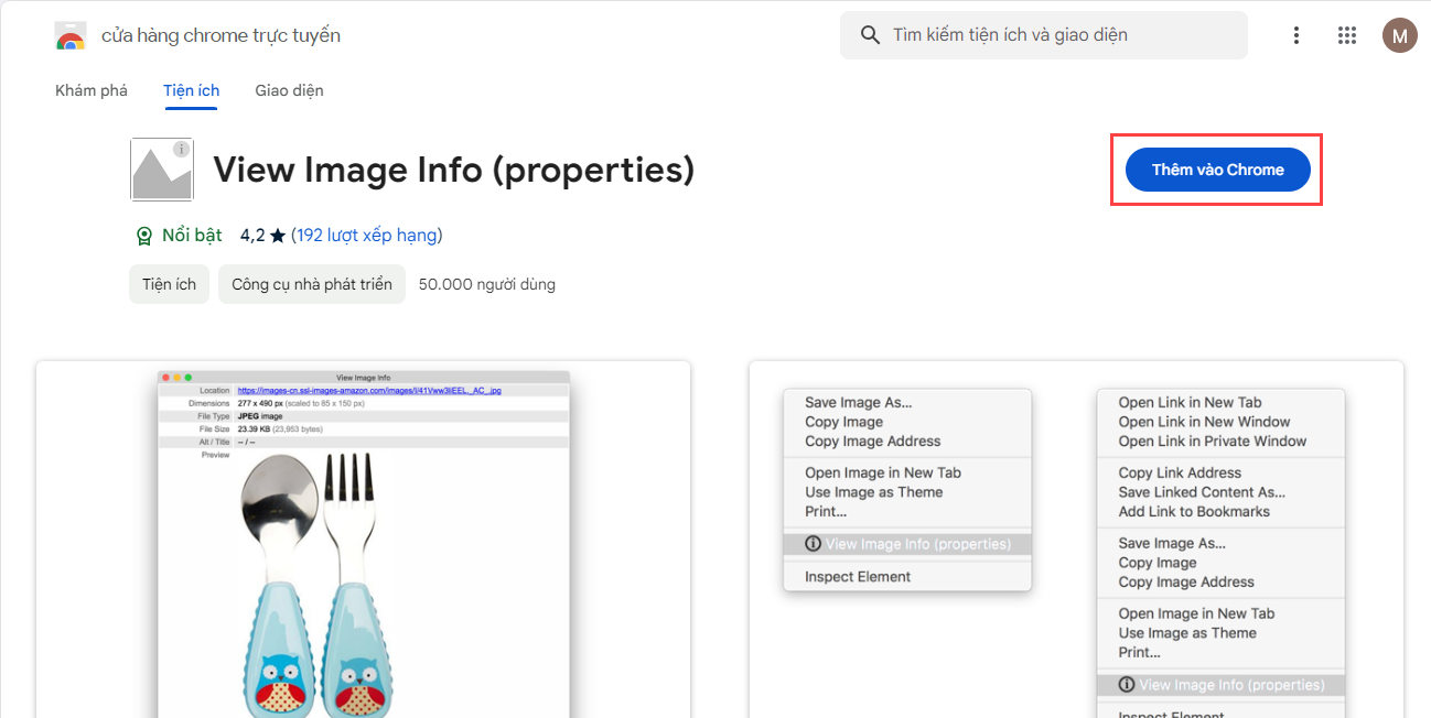 - Bạn truy cập vào extension này https://chromewebstore.google.com/detail/view-image-info-propertie/jldjjifbpipdmligefcogandjojpdagn?hl=vi&pli=1 và Thêm vào Chrome