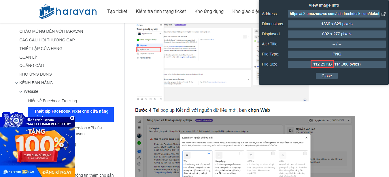 Haravan sẽ bày cho bạn một mẹo để xem dung lượng hình ảnh nhanh chóng. Bạn hãy làm theo những bước sau:
