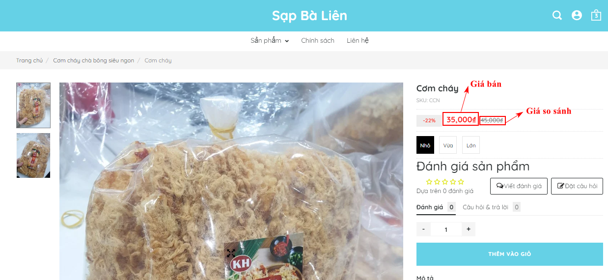 Giáchính là giá bạn sẽ bán sản phẩm cho người mua hàng. Giá so sánh phải lớn hơn Giá.