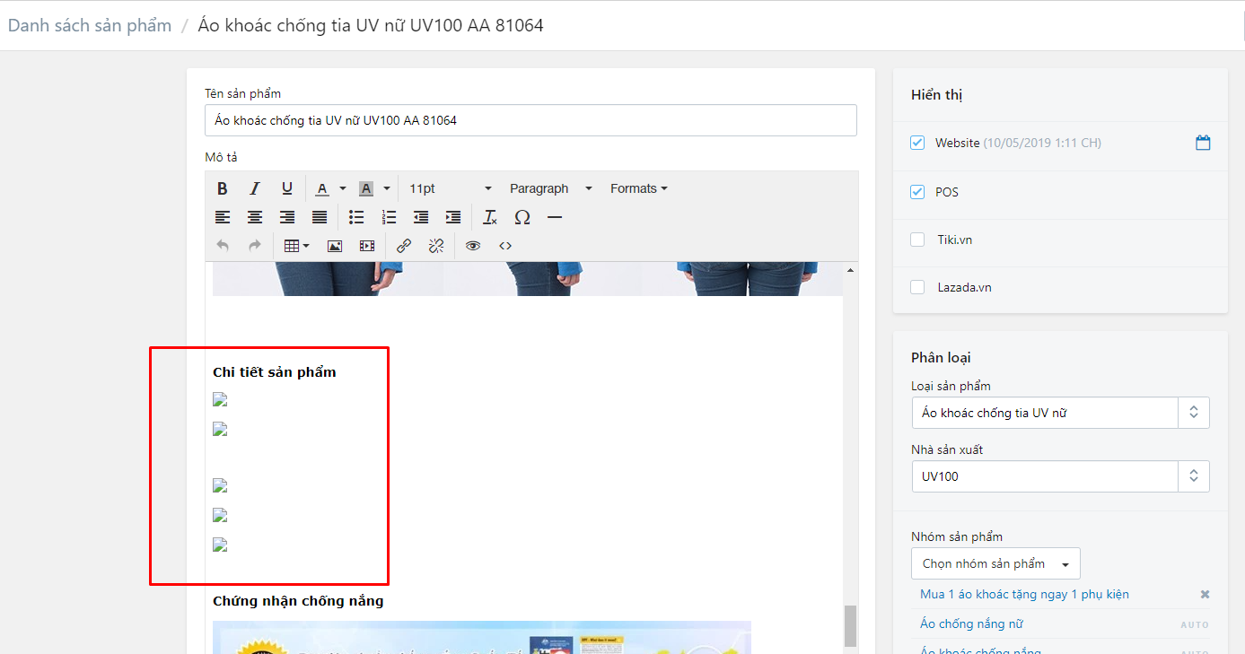 Hình ảnh ở mô tả sản phẩm bị lỗi định dạng sau 1 thời gian