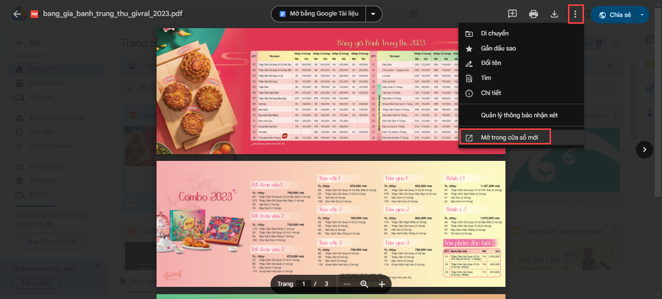 - Chọn biểu tượngba dấu chấm bên cạnh Chia sẻ và chọn Mở trong cửa sổ mới