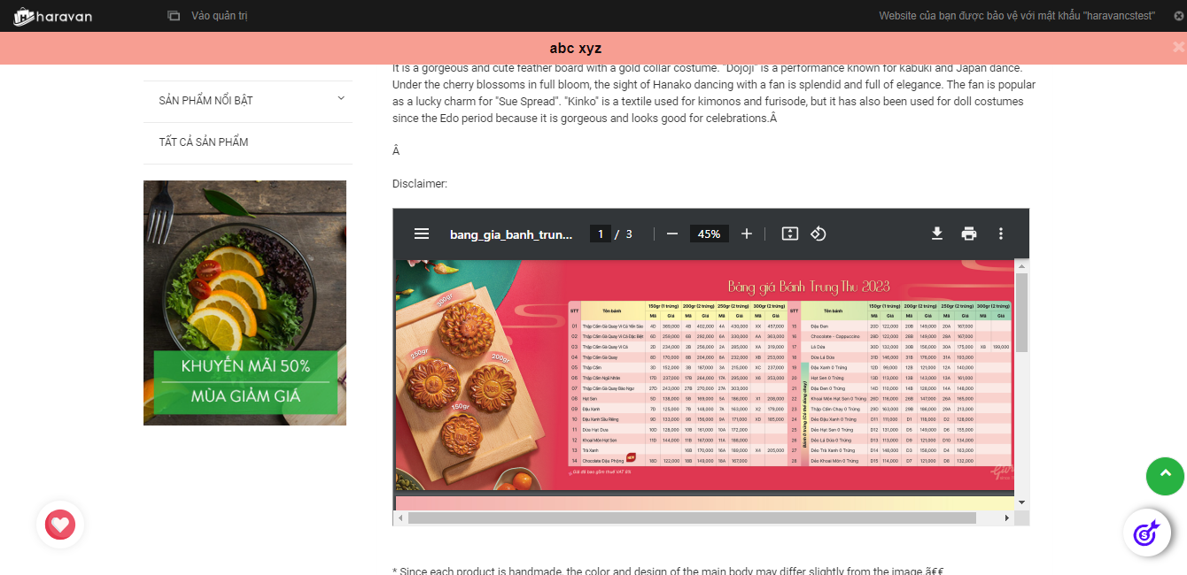 Làm sao để chèn file pdf phần mô tả sản phẩm?