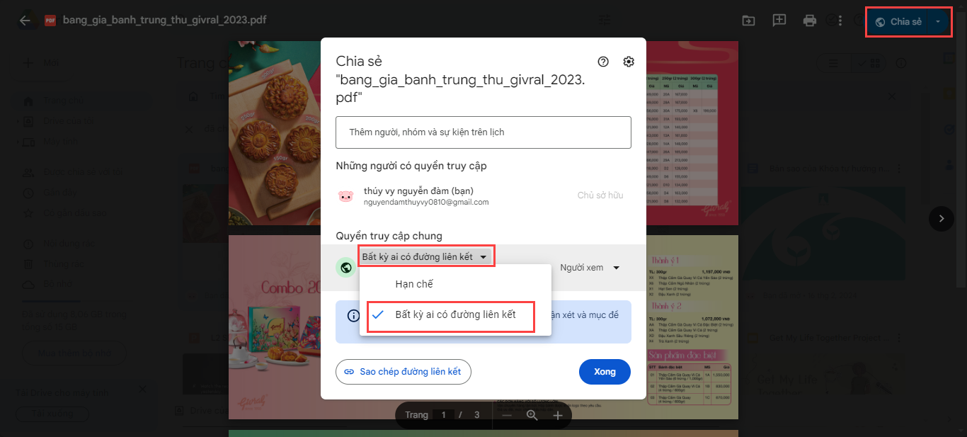 - Tải file PDF lên Google Drive và mở quyền truy cập công khai