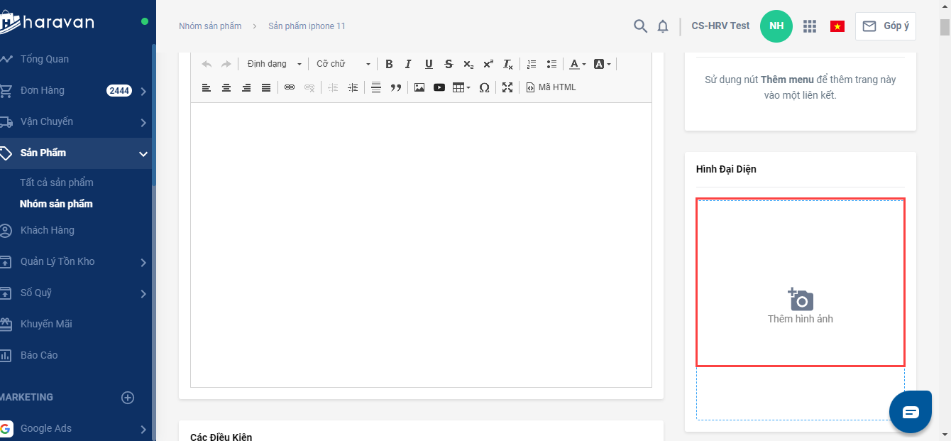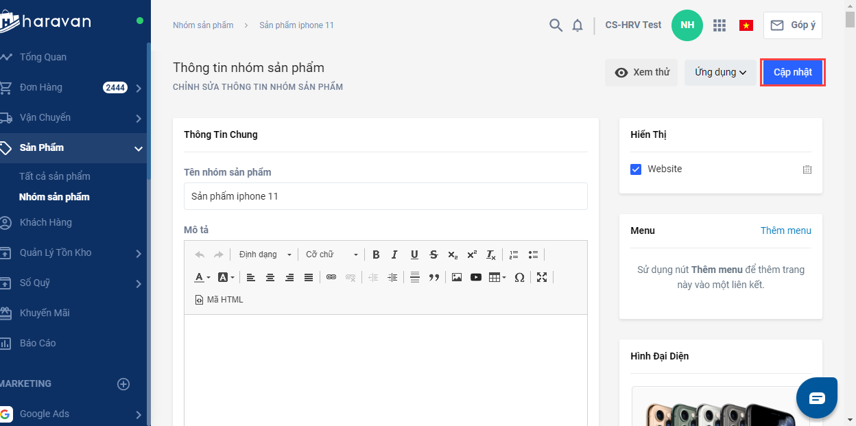 Tại mục nhóm sản phẩm, chọn nhóm sản phẩm cần thực hiện thay đổi hình ảnh đại diện hiển thị