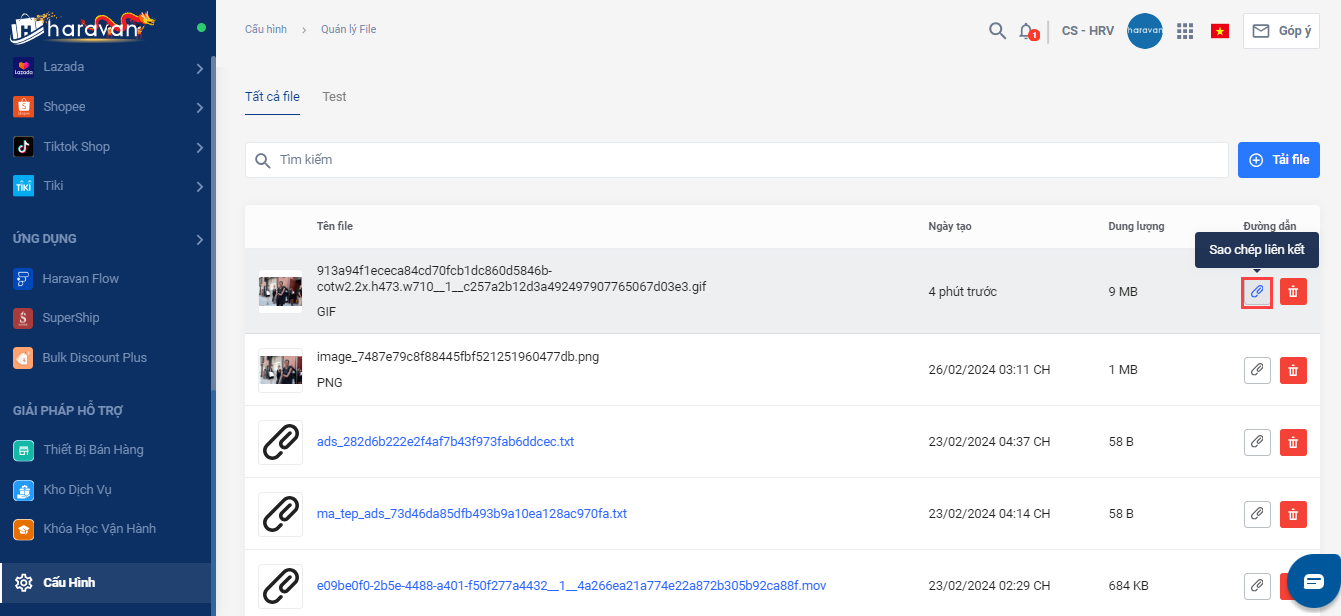- Sau khi đã tải file thành công, bạn chọn Sao chép liên kết