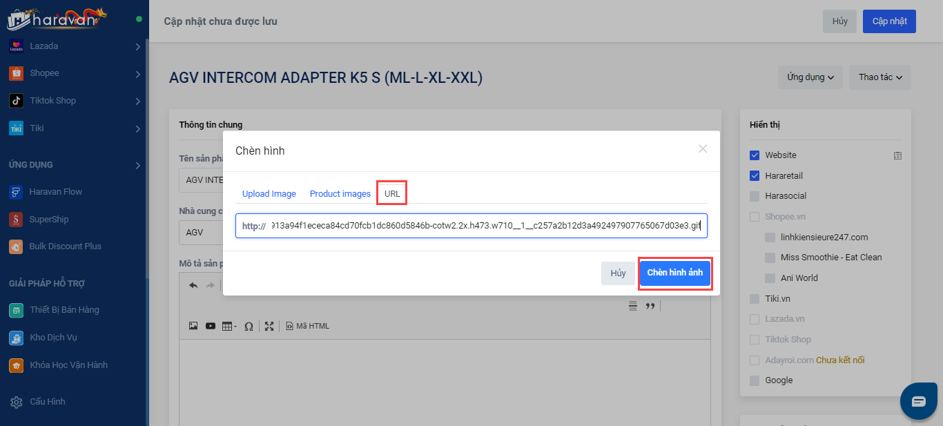 5. Chọn**URL** và dán link URL sản phẩm vừa copy