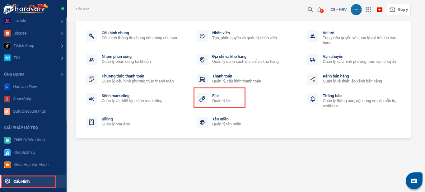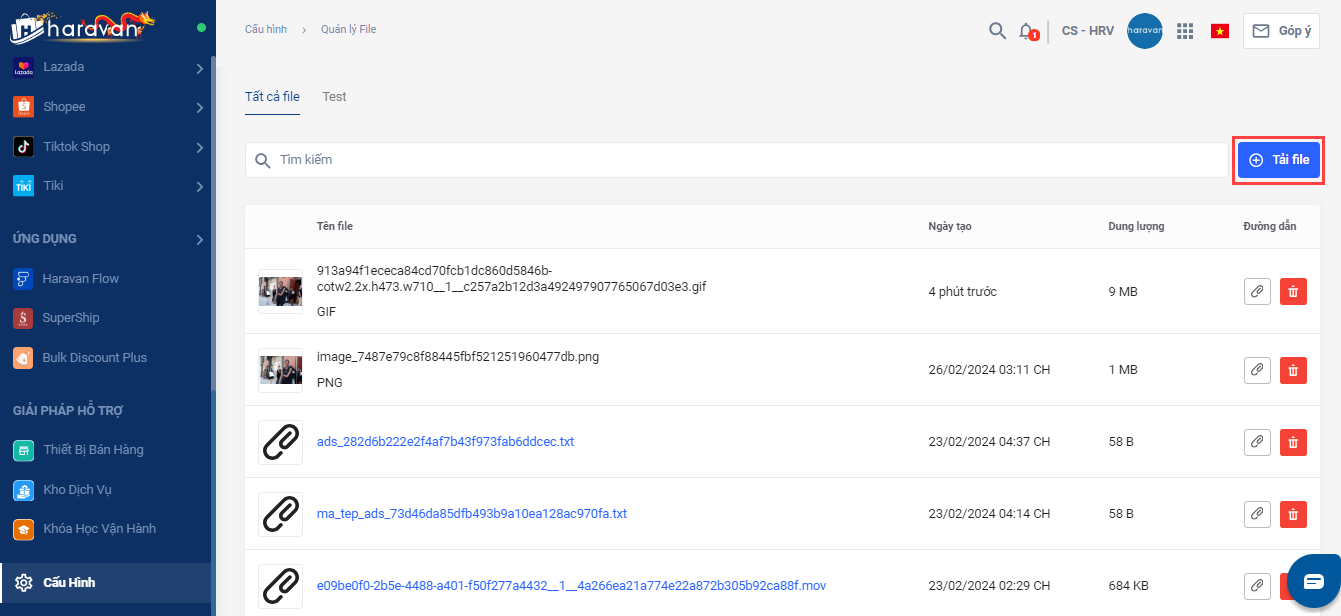 - Thực hiện tải ảnh gif về thiết bị và chọn Cấu hình-> chọnQuản lý File