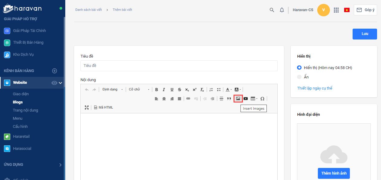 4.Tại mục mô tả sản phẩm, mô tả nhóm sản phẩm hoặc nội dung blog, bạn Insert Image