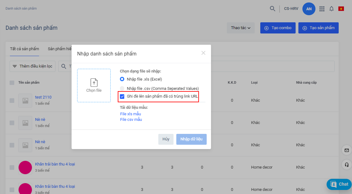 Tại sao khi nhập danh sách sản phẩm, cần chọn chế độ “Ghi đè lên sản phẩm đã có trùng link URL” ?