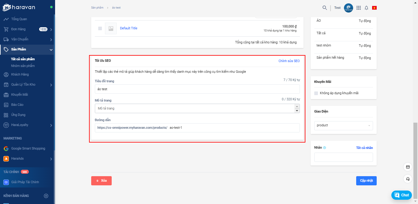 3. Trong Chỉnh sửa SEO có chứa kí tự đặc biệt. Bạn cần đảm bảo rằng nội dung trong SEO (tiêu đề trang, mô tả trang, đường dẫn) không được chứa ký tự đặc biệt.