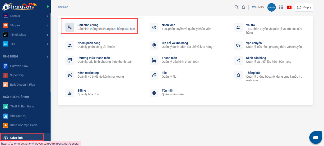- Chọn Cấu hình -> chọn Cấu hình chung