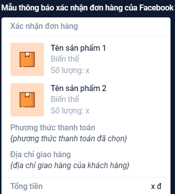 - Mẫu xác nhận đơn hàng của Facebook sẽ gồm 3 loại: