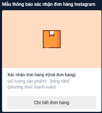 - Mẫu xác nhận đơn hàng của Instagram: Mẫu xác nhận sẽ được gửi cho khách hàng khi đơn hàng được tạo trên hội thoại Instagram.