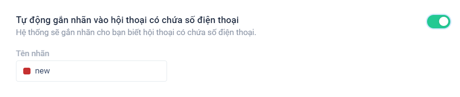 1. Tự động gắn nhãn vào hội thoại có số điện thoại: