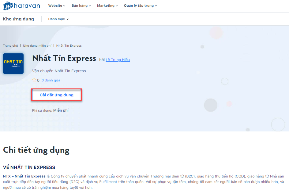 Chọn vào nhà vận chuyển bạn muốn kết nối và chọn Cài đặt ứng dụng