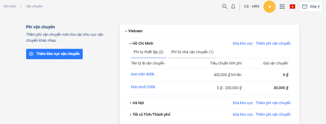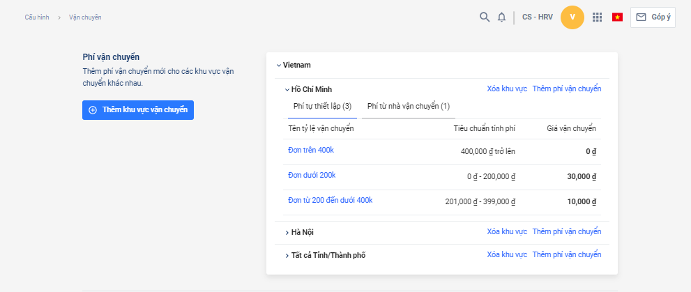 Điều gì cần lưu ý khi thiết lập phí vận chuyển hoặc cấu hình khu vực vận chuyển ?