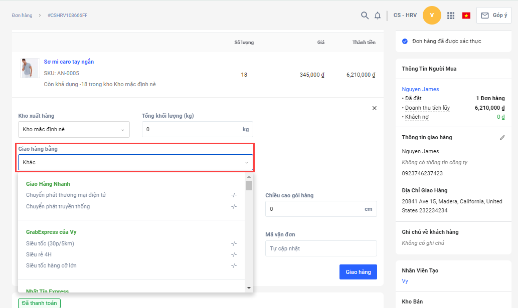 Với các đơn giao quốc tế, bạn có thểtạo vận đơn với nhà vận chuyển Khác và tự giao hàng.