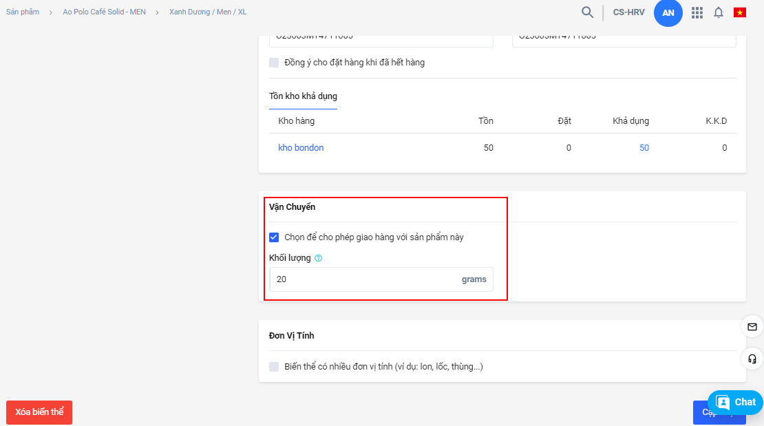Lưu ý: sản phẩm phải được nhập khối lượng thì mới áp dụng được phí vận chuyển theo khối lượng.