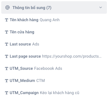 Ví dụ: Hiện thông tin khách hàng đến từ chiến dịch quảng cáo