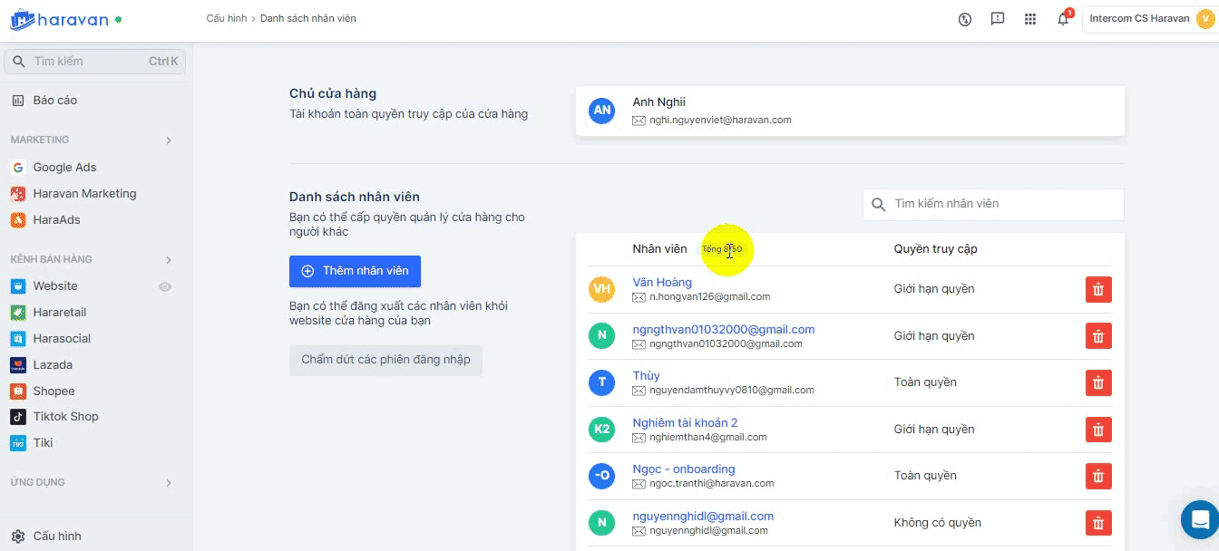 Làm thế nào để thêm người dùng có quyền chủ cửa hàng vào tài khoản Haravan của tôi?