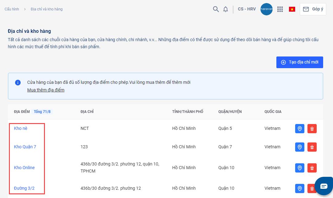Bên cạnh đó, bạn cần thêm nhân viên vào các địa chỉ bán hàng để tài khoản nhân viên có thể truy cập vào chi nhánh trên Haravan POS.