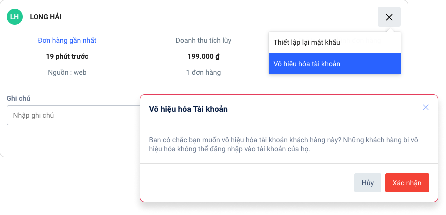- Vô hiệu hóa tài khoản của khách mua hàng