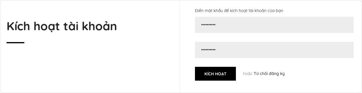 - Khách mua hàng sẽ nhận được email mời kích hoạt tài khoản. Khi làm theo hướng dẫn trong email, họ sẽ được dẫn đến trang nhập mật khẩu cho tài khoản.