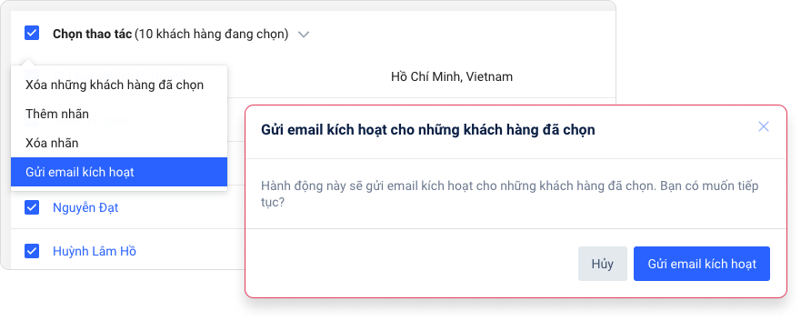 Để tiết kiệm thời gian cho bạn, Haravan cho phép gửi email mời kích hoạt tài khoản đến hàng loạt khách hàng. Để thực hiện việc này bạn làm như sau: