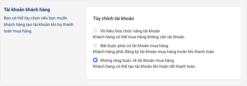 Lưu ý: Việc yêu cầu khách mua hàng tạo tài khoản có thể làm giảm chuyển đổi doanh số bán hàng. Hãy cẩn thận!
