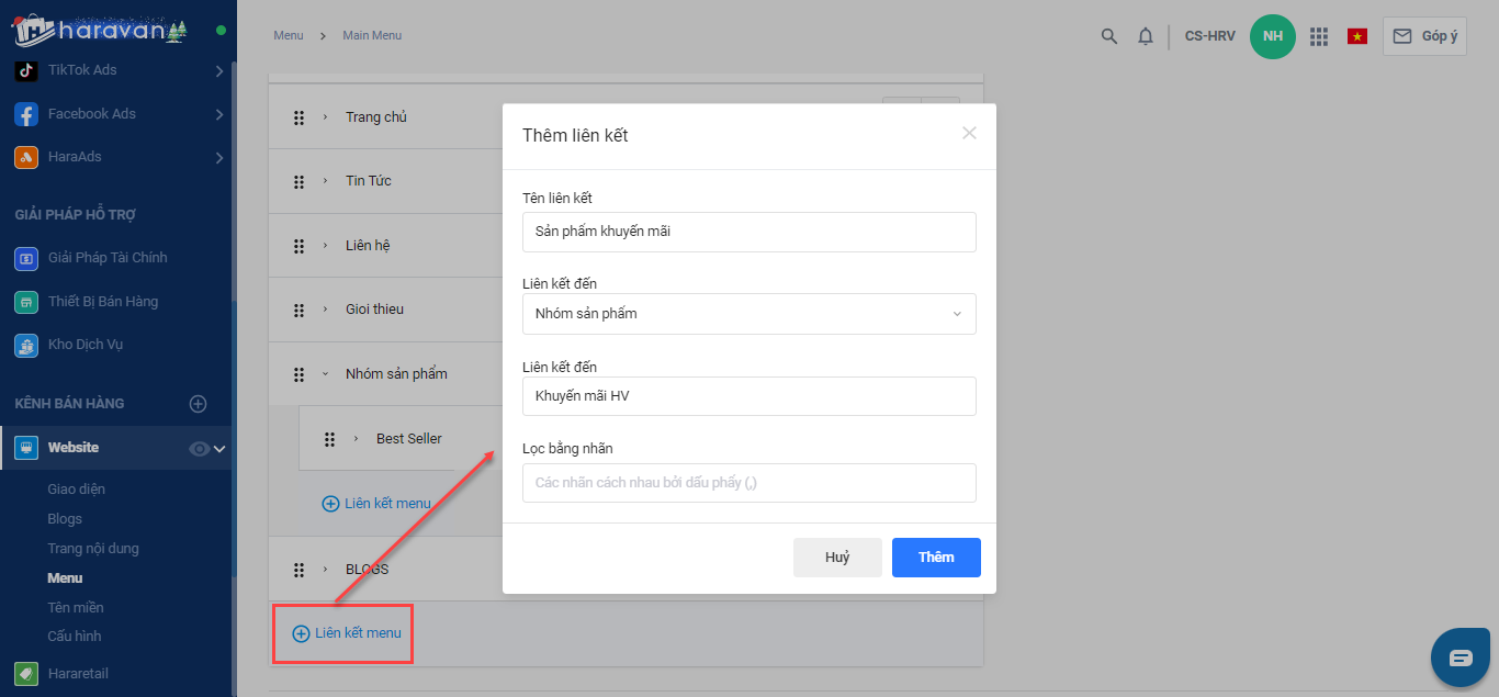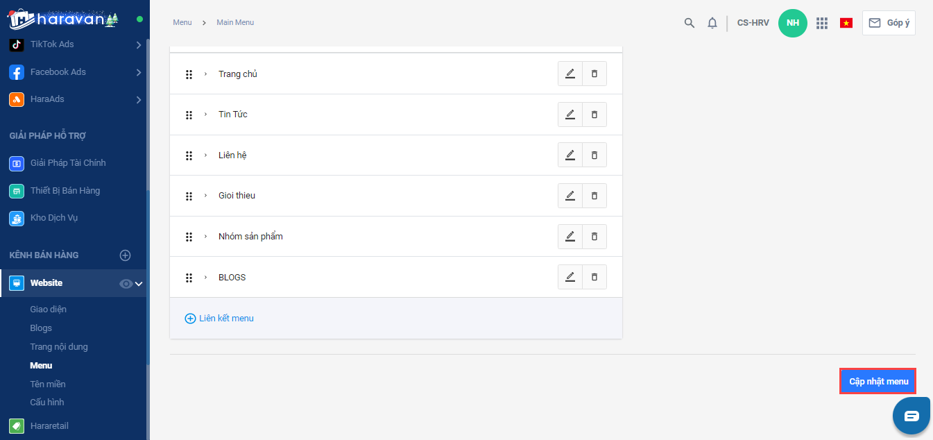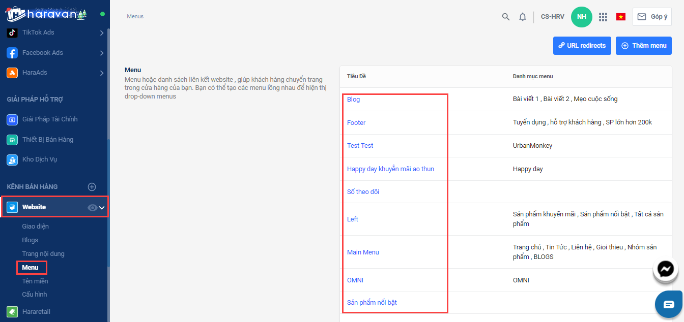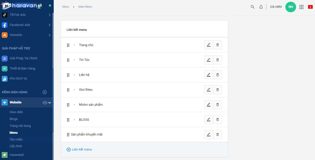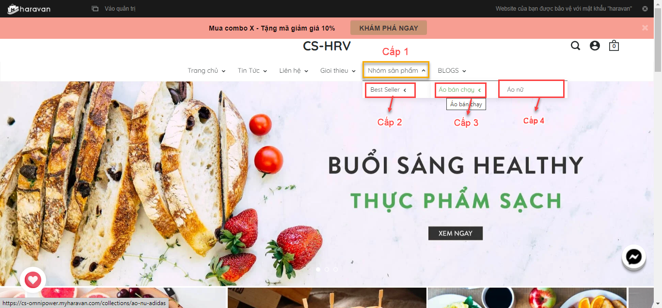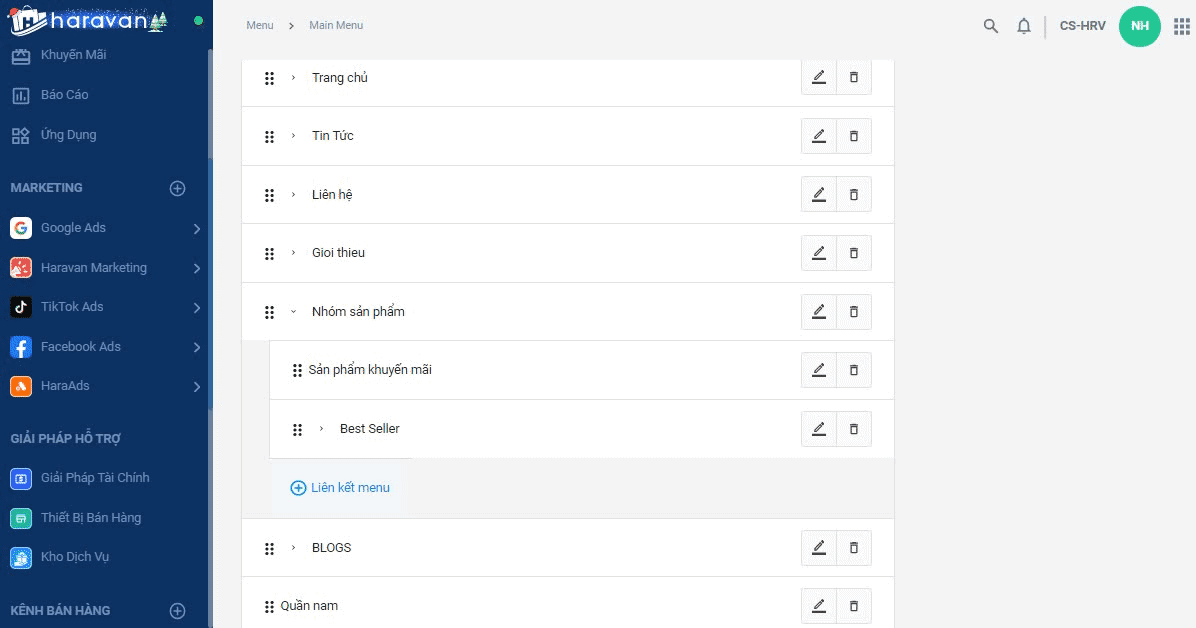 Về cơ bản hệ thống sẽ hỗ trợ tối đa 4 cấp menu, nhưng Haravan khuyên bạn chỉ nên tạo 2-3 cấp menu để hiển thị ngoài giao diện.