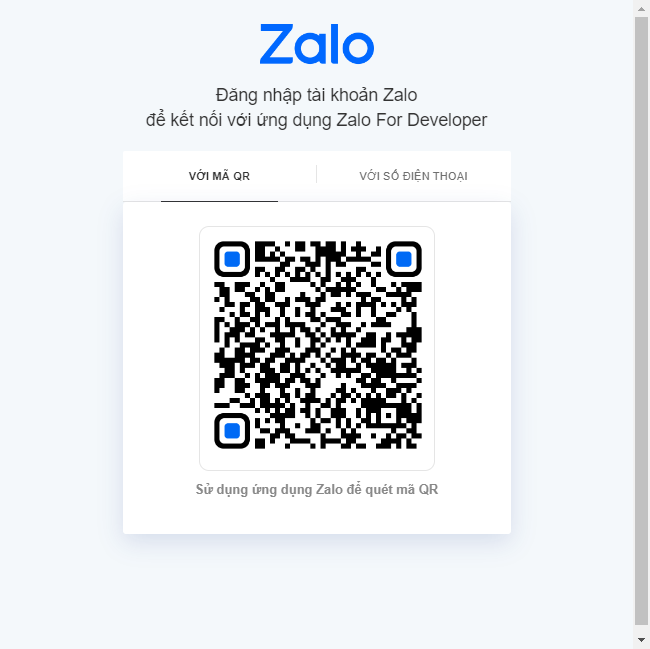Bước 2: Nhà bán hàng thực hiện quét mã QR hoặc nhập số điện thoại để đăng nhập vào tài khoản Zalo của mình. Bạn có thể đăng nhập vào tài khoản Zalo cá nhân để thực hiện debug.