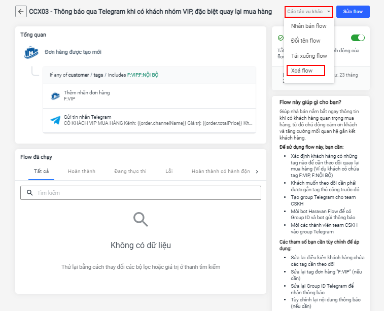Haravan Flow CCX03 - Thông báo qua Telegram khi có khách nhóm VIP, đặc biệt quay lại mua hàng