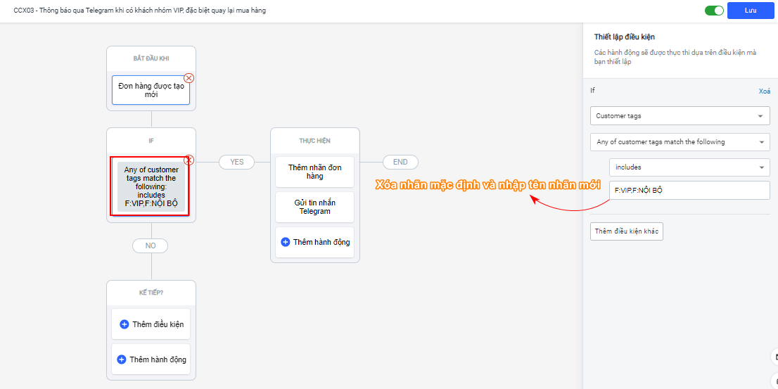 - Tôi phân loại khách hàng VIP theo nhãn khác vậy tôi có thể thay đổi điều kiện về nhãn được không?