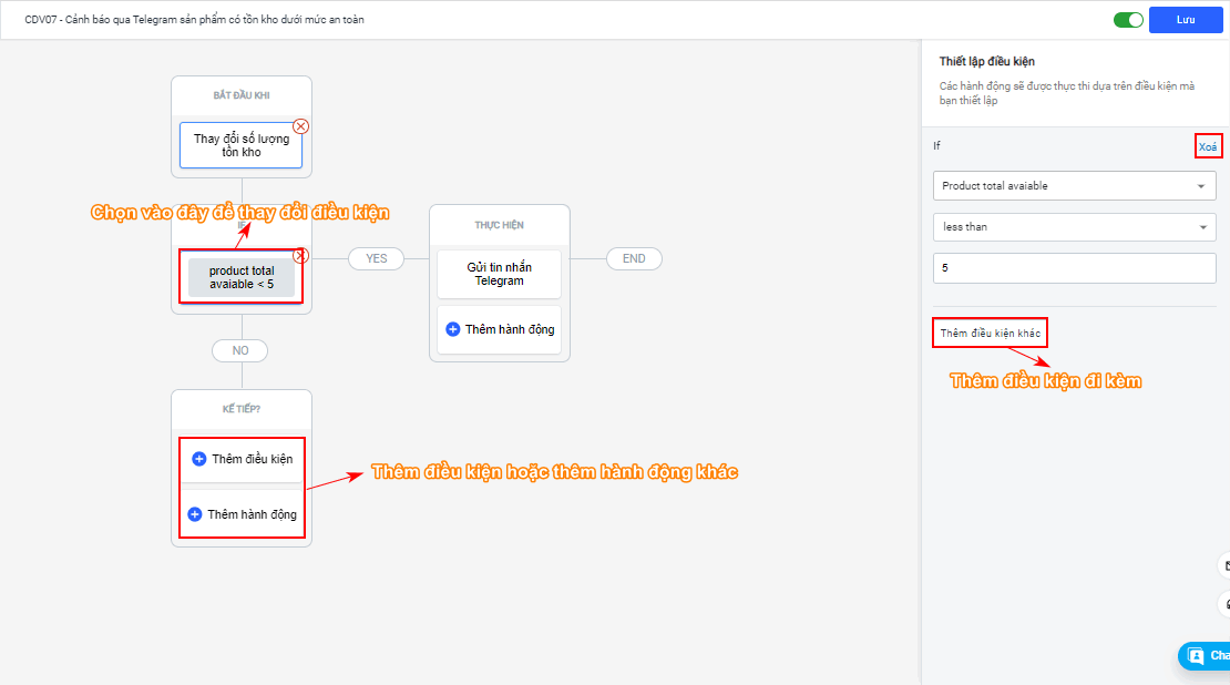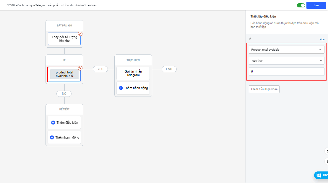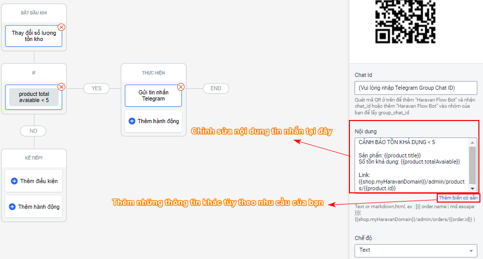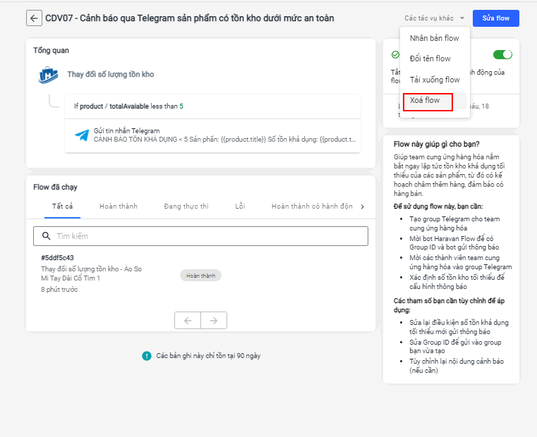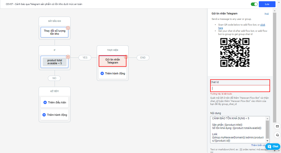 Haravan Flow CDV07 - Cảnh báo qua Telegram sản phẩm có tồn kho dưới mức an toàn