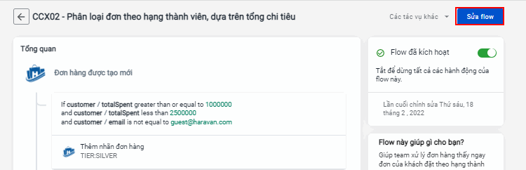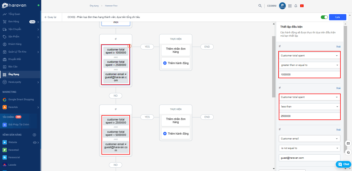Haravan Flow CCX02 - Phân loại đơn theo hạng thành viên, dựa trên tổng chi tiêu