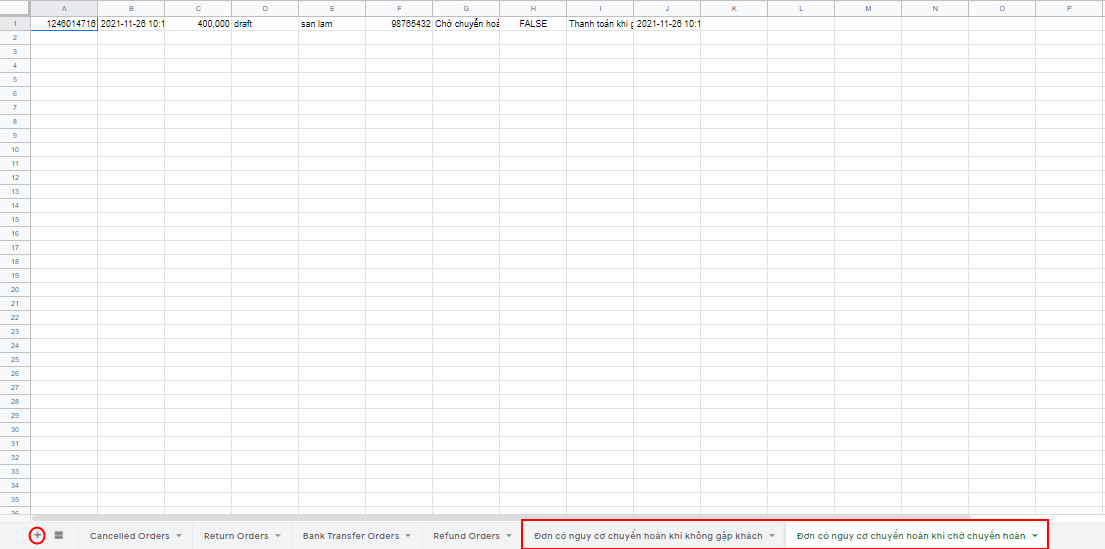Cập nhật thông tin đơn hàng vào sheet Risk Return Orders.