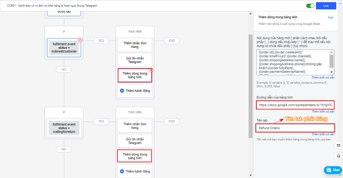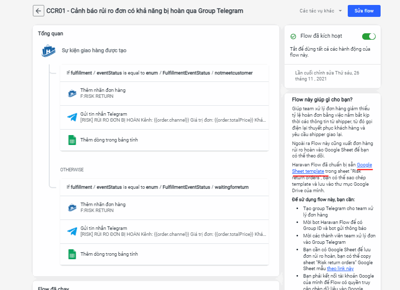 Haravan Flow CDV04 - Tổng hợp vào Google Sheet các đơn bị hủy để phân loại và báo cáo.